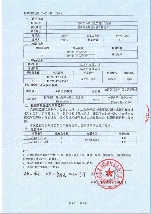 1、河北青龙满族自治县500T/D垃圾焚烧项目;
