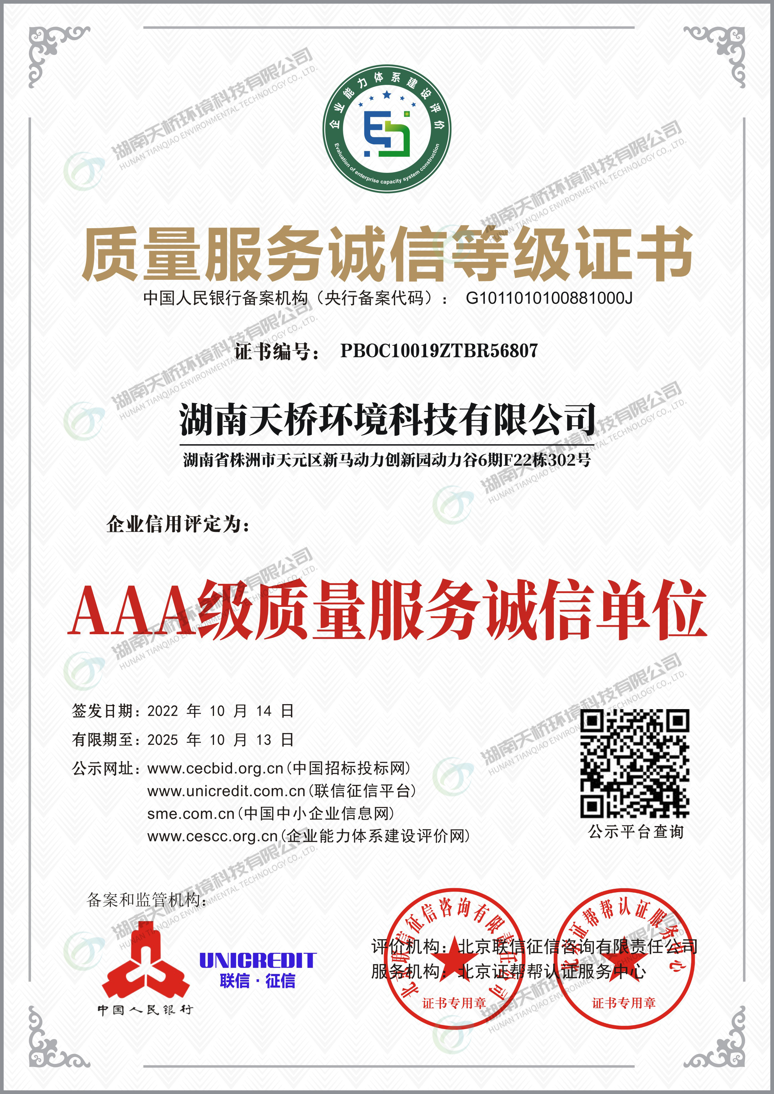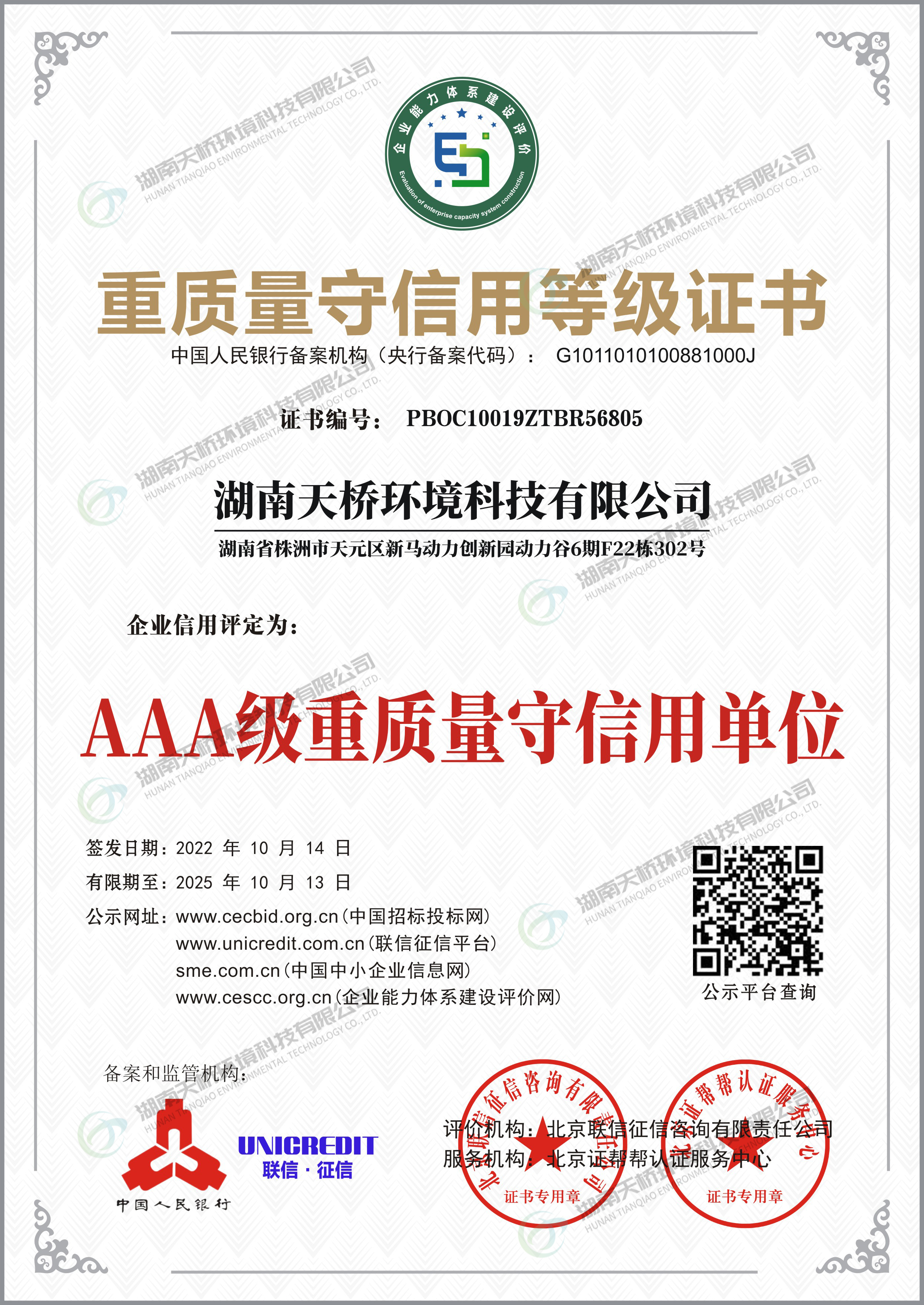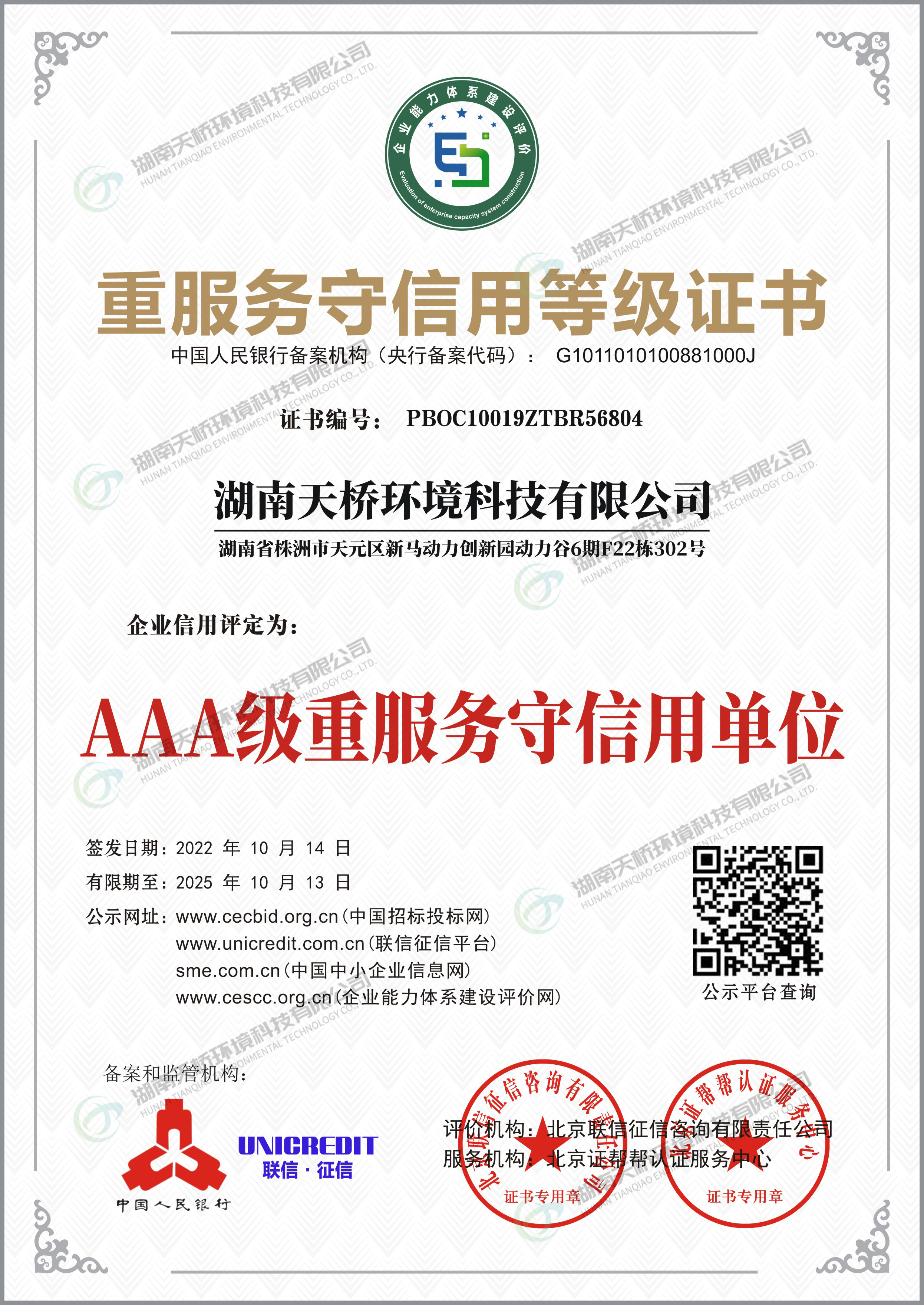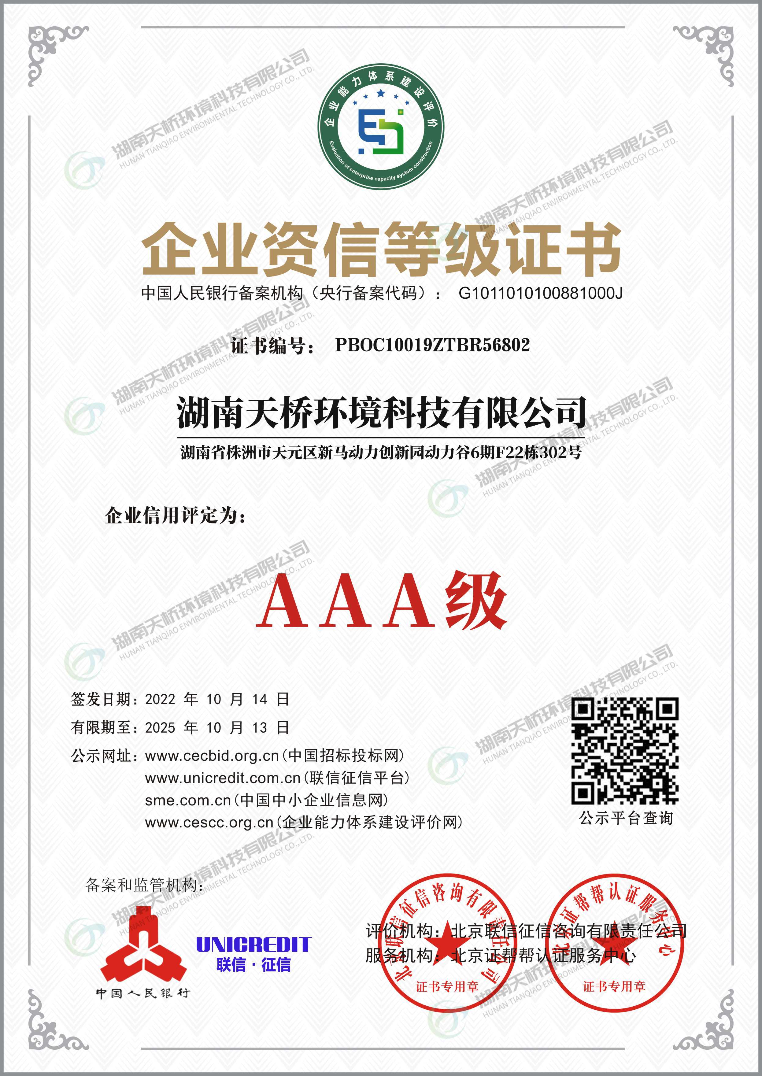 湖南天桥环境科技有限公司是湖南省株洲市国资委控股的国有企业,株洲天桥起重机股份有限公司旗下子公司,主要股东还包括中国中车集团股份有限公司、中国铝业集团股份有限公司特大型央企。