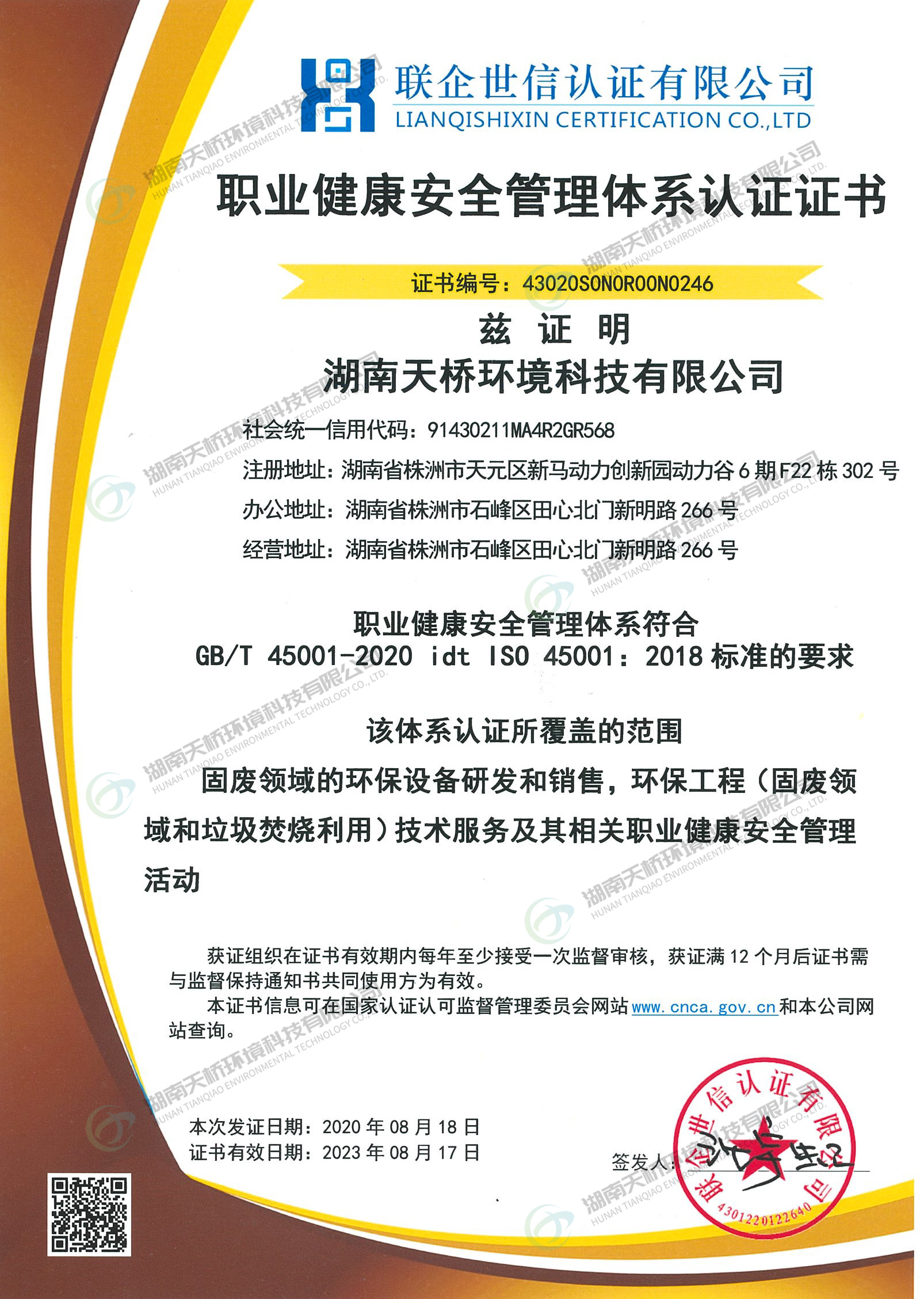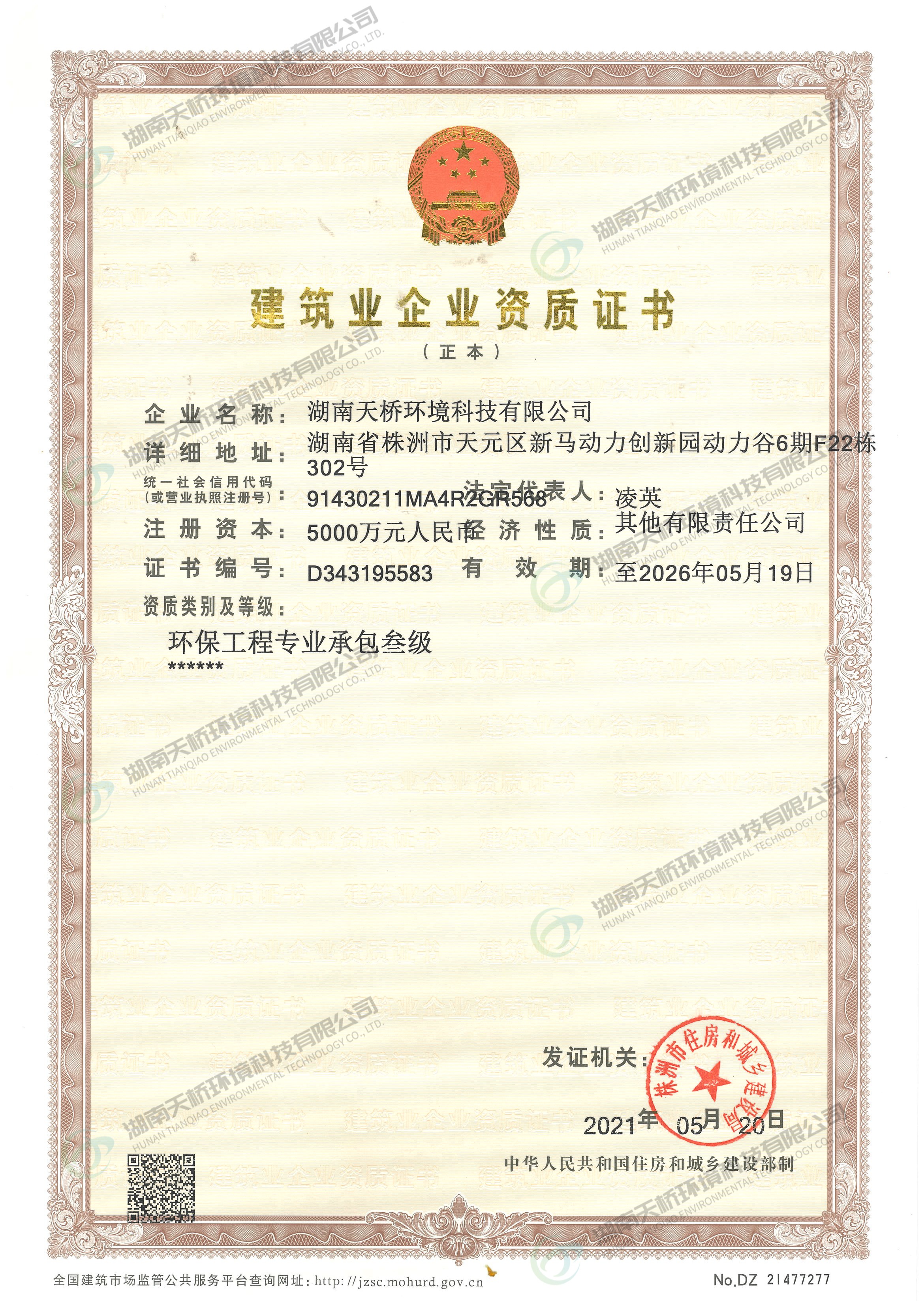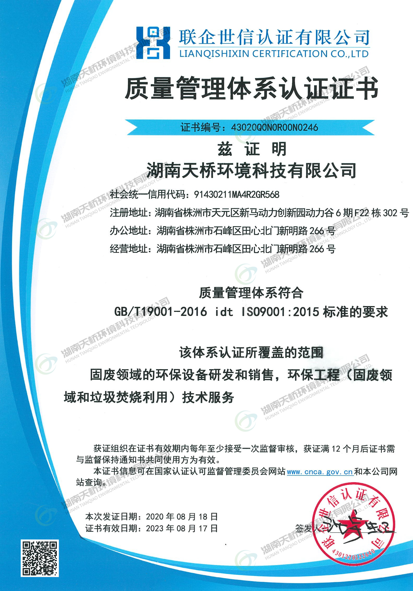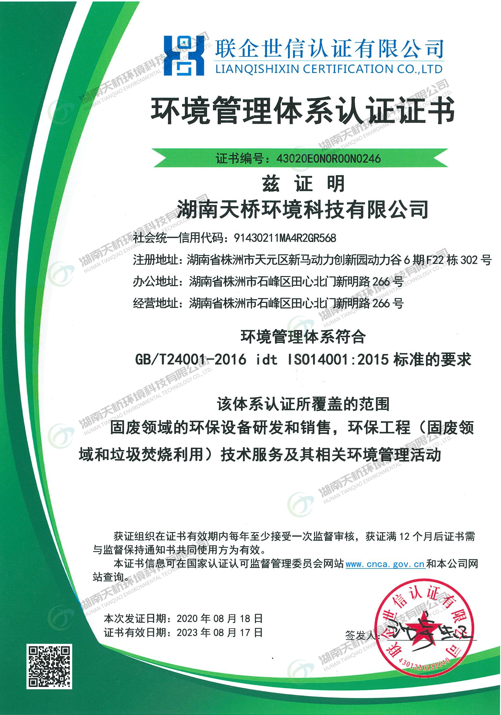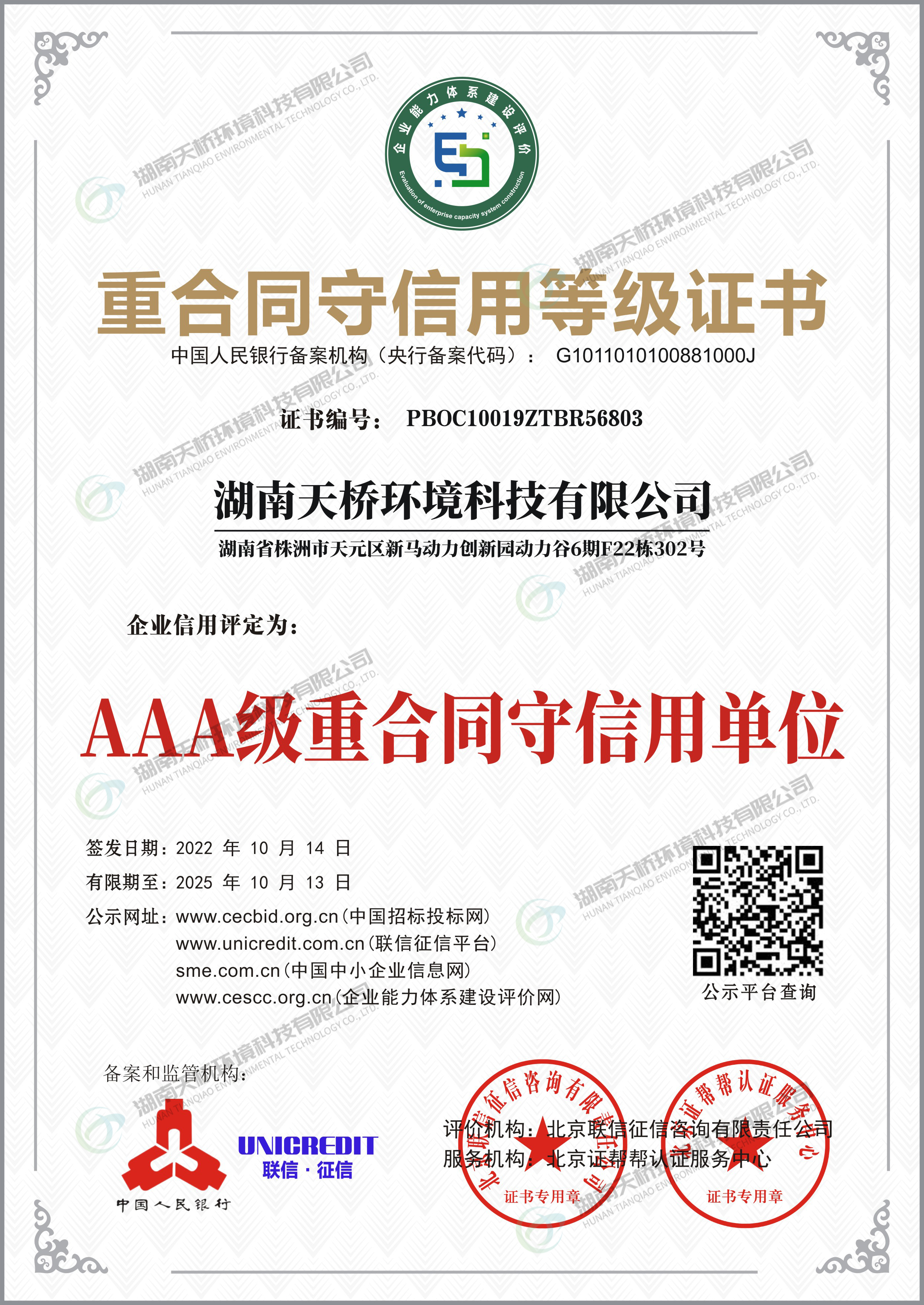 湖南天桥环境科技有限公司是湖南省株洲市国资委控股的国有企业,株洲天桥起重机股份有限公司旗下子公司,主要股东还包括中国中车集团股份有限公司、中国铝业集团股份有限公司特大型央企。